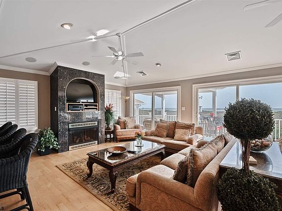 You and your family deserve this! Oceanfront beach residence with exceptional materials and superb finishes throughout. Masterfully constructed with 2x6 framing, boasts 5352 sq ft, was built on pilings and the 50x114 lot allows plenty of room to add a pool. The 3rd floor living area is breathtaking and features expansive ocean views, hardwood floors, cozy fireplace, and a gorgeous kitchen with SS appliances. Entertaining is a breeze - There is room for all such as multiple dining areas, multiple living areas including a family room complete with a fireplace and wet bar with wine cooler. You'll also love the sumptuous bathrooms, convenient elevator, and so much more! Located just steps to the white sand beach, and near the end of a dead-end street giving it more privacy than other locations in town. A must-see!!