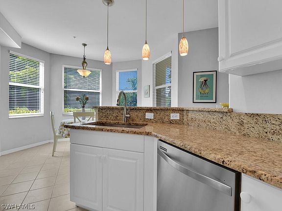 IDEAL FOR SEASONAL SWFL LIVING! This meticulously cared for first floor unit offers a fantastic layout w/ great room design, spacious kitchen, formal dining room (great for an office) & breakfast nook, spacious master bedroom w/ large walk-in closet, laundry room w/ shelving, and screened rear lanai overlooking a peaceful setting. Updates to the home include- all new appliances in 2016, new roof & lanai screen in 2022, new hot water heater in 2017, safety bars added in master bath, and interior freshly painted in 2024.The building has assigned covered parking and a community elevator servicing all floors. Situated in a gated community w/ a highly-desired S Cape Coral location and offering a community pool & spa, tennis courts, picnic area, and more! Easy access to both the Midpoint Bridge & the S Cape Coral Bridge leading to Fort Myers, just a short drive to the waterfront dining of Cape Harbour & Tarpon Point Marina, 5 miles from the nature trails & kayaking of Four Mile Cove Ecological Preserve, and only 11 minutes from Cape Coral Yacht & Racquet Club w/ tennis, racquetball, community boat ramp, fishing pier, pool, and community center.