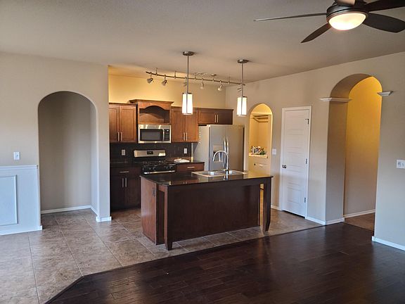 Great Southern Reserve home with many upgrades, great for entertaining. Granite in kitchen, large island, gas range, dishwasher and microwave. Great walk-in pantry. Laundry has hanging rack along with storage cabinets. Covered patio. Best way to contact is by phone: Master bedroom is large with seasonal closet, tub and walk-in shower. The other 2 bedrooms have walk-in closets. Southern Reserve has a community pool, playgrounds, walking trails and ponds, very peaceful. Small dogs OK. Background check, easy to show, great to rent from. Please call for showing, slow on email. Renter is responsible for all utilities.