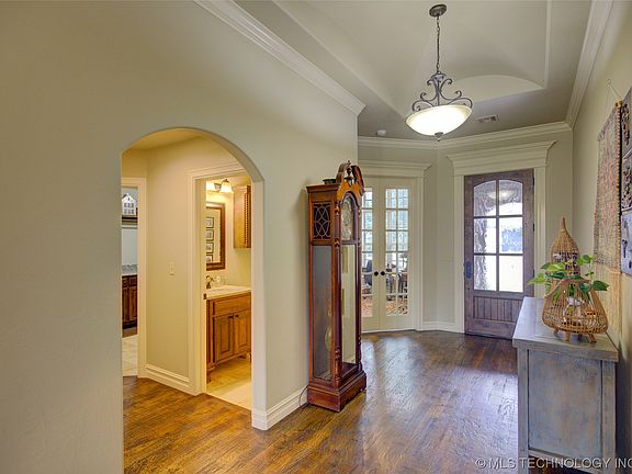 Beautiful, move in ready home in Shadow Trails. Built by Executive Homes, 1 level plan and maintained impeccably. 4 beds, 2.5 bath, 3 car. Located in desirable Bixby school district. Open kitchen/living with granite, stainless appliances, travertine tile and handscraped wood floors. Energy rated with spray foam insulation. Neighborhood pool. Easy access to shopping, highways and more.