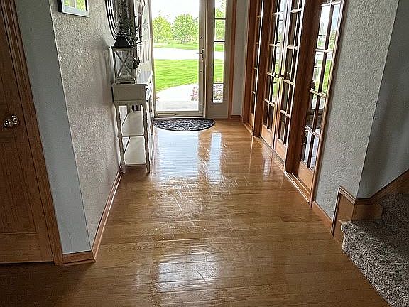 Small town living at its finest! This charming home boasts a spacious two-story foyer with a cathedral ceiling in a great room equipped with a gas fireplace. The kitchen is a feast for the eyes, featuring granite countertops, an island, a variety of appliances, and an eat-in area overlooking the deck. The dining room is currently used as a playroom. The master suite is on the first floor and bathroom is complete with double sinks, a jetted tub, a standalone shower, and a walk-in closet. There are three bedrooms upstairs. The home also includes a three-car garage, an arbor, a well-manicured and landscaped lawn, and a spacious backyard including a shed and swing set