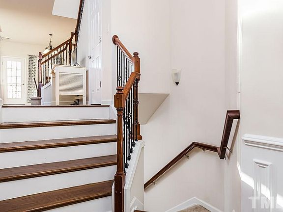 High end 3 story townhome! Kitchen features granite countertops, island, SS appliances & gas range. Living room with corner FP & surround sound. Extensive hardwoods. Dual master suites w/ trey ceilings. Lower level 3rd bedroom suite w/ lots of storage. Elegant wrought iron stair rails. Large Newer HVAC unit. Light and bright home is conveniently located to trails, Crossroads, NCSU, & DT Raleigh. Easy access to major hwys!
