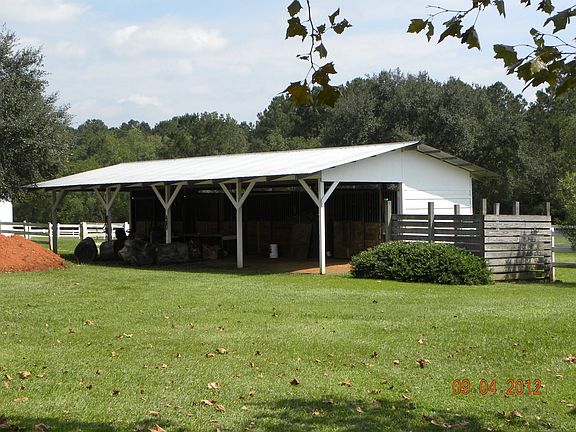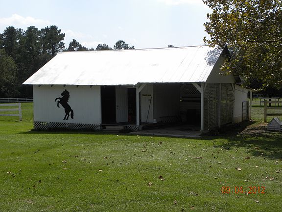 Wonderful home with beautiful acreage. 10 horse stalls, each pasture water tubs & faucets. The home is 2 Br, 2Bt, vaulted ceiling in living area & tray ceiling in master. Open dining & kitchen, with cherry cabinets, granite & island. Master has walk-in closet, large garden tub, & free standing shower. A/C unit recently replaced (7/15) w/ 5 yr warranty. Wrap around deck with brick patio. 2 stall now rented, income $1000.00 a month. Peaceful surroundings with several shade trees.