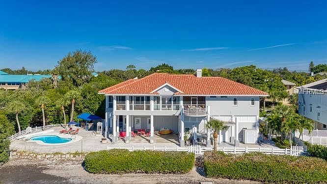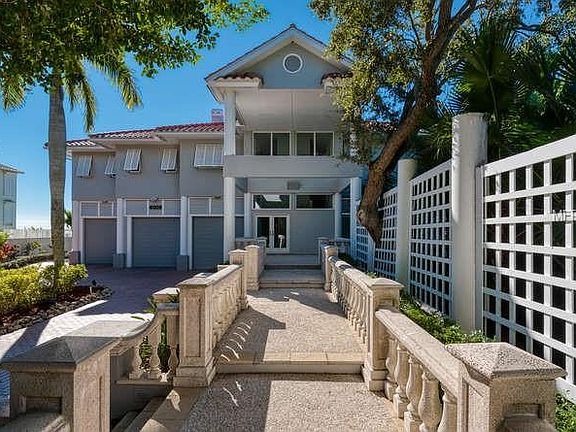 Discover the best-kept secret of the Bayfront, a .65 acre, coastal nirvana where every day begins and ends with the Gulf Coast sun, graceful Heron passing by and every sense stimulated by captivating Florida living. This split-level residence was designed for all stages of life, whether hosting family or friends. Natural light illuminates the home via high ceilings and abundant windows recently upgraded to the highest hurricane standards, while spaces, such as the air-conditioned game room and wraparound terrace with hot tub, ensure every generation is entertained. Start mornings in the updated kitchen with granite surfaces, induction cooktop and GE and Kitchen-Aid appliances before opening French doors to sparkling waterfront views stretching from Longboat Key to Sarasota. A living room with fireplace, surround sound and wet bar is a hub for evening relaxation, while the pool area with gazebo is shielded by mangroves, providing the perfect venue for celebrations. The master suite exudes comfort with a spacious walk-in closet and en-suite bath with custom vanity, and a large den on main level can be an additional guest space or office. Versatile indoor/outdoor spaces on the ground level are perfect for poolside entertaining or hosting guests for extended visits, and an oversized garage has extensive storage, holding 3 cars with space to install lifts. Additional features include an elevator; 70 pilings that for added structural stability; and array of recent updates to utilities.