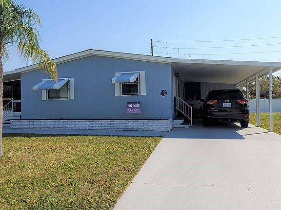 Just Listed $39,900 Partially Furnished Come take a tour of this 1986, manufactured home featuring 2 bedrooms and 2 bathrooms. This is a Bargain! Don't walk.....RUN!! It will not last long! The eat-in kitchen has new countertops with a new dishwasher. This kitchen is fully equipped with all your major appliances. Freshly painted interior and exterior. This is a solid home with new sub flooring and vinyl plank floors. Vaulted ceilings. The Living room is cozy with chair rail and two-toned paint. The sliding glass door leads out to the side enclosed lanai. The lanai has slider windows for you to allow the Florida breeze to circulate. This is a wonderful spot to relax and sip your morning cup of coffee. The Guest bathroom has a tub/shower combo and a new toilet. Guest bedroom is roomy with a step-in closet. Large primary bedroom with a walk-in closet and an ensuite bathroom. The exterior has new skirting. The roof is shingle. Side driveway, carport and storage shed. The driveway easily accommodates two cars. The storage shed hosts the washer, dryer and utility sink with plenty of room for your tools, beach gear, bikes, and overflow storage. The front and back yard are spacious and perfect for your furry friend. Don't miss your chance to call this your Florida dream home! Call today to book your showing. Colony Cove is an age qualified (55+) five-star resort community of manufactured / mobile homes. The "Cove" boasts 5 clubhouses, 6 heated pools, a riverfront pavilion and private fishing pier, a private marina, a fenced dog park (very pet friendly), tennis, shuffleboard, new pickleball courts, 2 new fitness rooms, 24-hour patrol, clubs for every interest, and much more. There are daily planned activities throughout the park. Bottom line, if you get bored here, it's your own fault!! The lot rent in Colony Cove is based on the homes' location. While the monthly rent may not be the lowest around, it's by far the best value for the money. Not only does the monthly rent cover all of the amenities of the community listed above, it also covers almost all other monthly expenses such as; water, sewer, trash pickup, all property taxes, lawn maintenance. . .pretty much every monthly expense except electricity and internet. The current lot rent on this home is estimated at $1001.79 per month. All listing information given to us is considered appropriate and reliable but always recommend Home Inspections by independent companies who have a background and thorough understanding of manufactured homes. We cannot guarantee the accuracy of information given to us or the condition of the home. Lot rents are determined by the community office not our company.