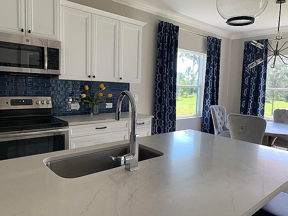 This Neal Communities 3 bedroom/3 bathroom home, in Silverleaf, has an elegant and comfortable design. The welcoming covered porch and entry have plenty of curb appeal, flowing into the inviting foyer, leisure room, where guests are greeted, coffered ceilings in the hallway, and great room to the desirable covered lanai with views of two ponds and tropical landscape. This is one of the largest lots in Silverleaf at the end of a cul-de-sac. This home is full of upgrades including high ceilings, crown moldings, 5 ½” base boards, high end wood cabinets, including pots & pans drawers, and quartz countertops in kitchen and all bathrooms to name a few. The well-equipped kitchen is complete with a large center island, with more than ample counter and cabinet space, and generous walk-in pantry. The massive master bedroom suite is highlighted by a coffered ceiling and 2 huge walk-in closets. Come see for yourself as well as the fantastic views! Note: There is no yard sign. HOA fees are $273.50 quarterly