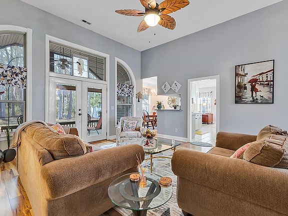 RUN, don't walk to this lovely home in The Gates, which is a popular neighborhood located just 3 miles straight to the beach and pier in SURFSIDE BEACH, "The Family Beach". The home features a well-defined layout with a spacious living room boasting vaulted ceilings and large windows which let in lots of natural light. A large screened-in porch provides a comfortable outdoor space to enjoy the tranquility and wildlife provided courtesy of the wooded backyard. The dining room offers elegant touches such as a tray ceiling, crown molding, and chair railing. The kitchen is equipped with ample cabinetry, Corian countertops and ceramic tile floors. There's a split bedroom floorplan, with the primary bedroom featuring a spacious sitting area, while two additional bedrooms share a bathroom between them. A separate den area off the dinette provides extra living space and a cozy gas fireplace. The home includes an upstairs flex room that could easily serve as a fourth bedroom, home office, man cave, craft room, or recreation area. It also offers a large storage area. A notable feature is the BRAND NEW ROOF, providing peace of mind and added value to the property. This home sits on ONE OF THE LARGEST LOTS IN THE DEVELOPMENT, offering ample space and privacy. This home is also located just 3 lots away from the mailbox and member's only pool. The Gates HOA offers OPTIONAL POOL MEMBERSHIP & TRASH COLLECTION, allowing residents flexibility in choosing amenities and services. In addition to being located close to the ocean, the neighborhood is also close to various attractions including shopping areas, The Market Common, the Marshwalk in Murrells Inlet, and golf courses, providing residents with a range of entertainment and leisure options. Square footage is approximate and not guaranteed. Buyer is responsible for verification.