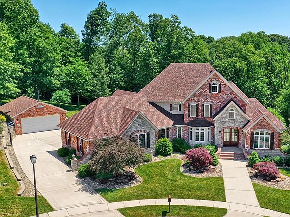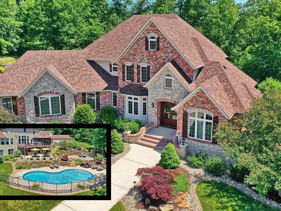 Elegance and luxury are showcased in this home. As you enter you will be greeted by custom doors that open to a 2 story foyer with a grand walnut staircase & triple crown molding. The great room features arched openings, 12ft custom beamed ceiling & floor to ceiling windows with a spectacular view. The kitchen is 100% custom with a prep island, serving bar, two-tone cherry wood cabinets, professional grade paneled appliances & premium grade granite counters. An archway opens the kitchen to a light filled hearth room with vaulted ceiling & beams. An elegant master suite features 12ft coffered ceiling, triple crown molding and has a mstr bath with his/her vanities & closets. The 2nd floor has 3 beds, each w/custom wainscoting, 2 full baths & laundry room. A walk-out lower level includes bar with fridge, dishwasher & beer tap, spacious family room, full bath and bedroom/office. A backyard oasis includes 3 tiered stamped/stone patios, outside bar w/appliances & a stunning pool.