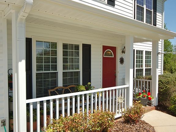 Lovely 4 bedroom home is located at the end of a cul-de-sac in the Windsor community. Updated in 2010. Recent roof, siding, gutters. Recent windows on main level. Rocking chair front porch. Kitchen with breakfast area. Formal dining room. Living Room with gas fireplace. Master bedroom suite has trey ceiling, walk in closet and bathroom with dual vanities. 3 more bedrooms and another full bath. Recent heat pump. Patio area. Storage bldg. Garage and parking pad. Level yard. Maintenance free vinyl siding.