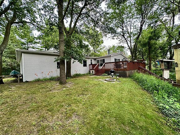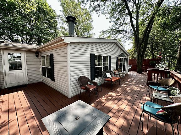 Stunning Riverfront wooded lot with stairs, pier and boat dock. There is a sandy beach area at the Riverfront. This property would make a great retirement, vacation, starter, or Airbnb! 2 Bedroom, 2 bath manufactured home with an oversized 2 car attached garage. A sunroom foyer area that overlooks the river, would make a nice little office area, a large deck found on the Riverside and south side of the home.