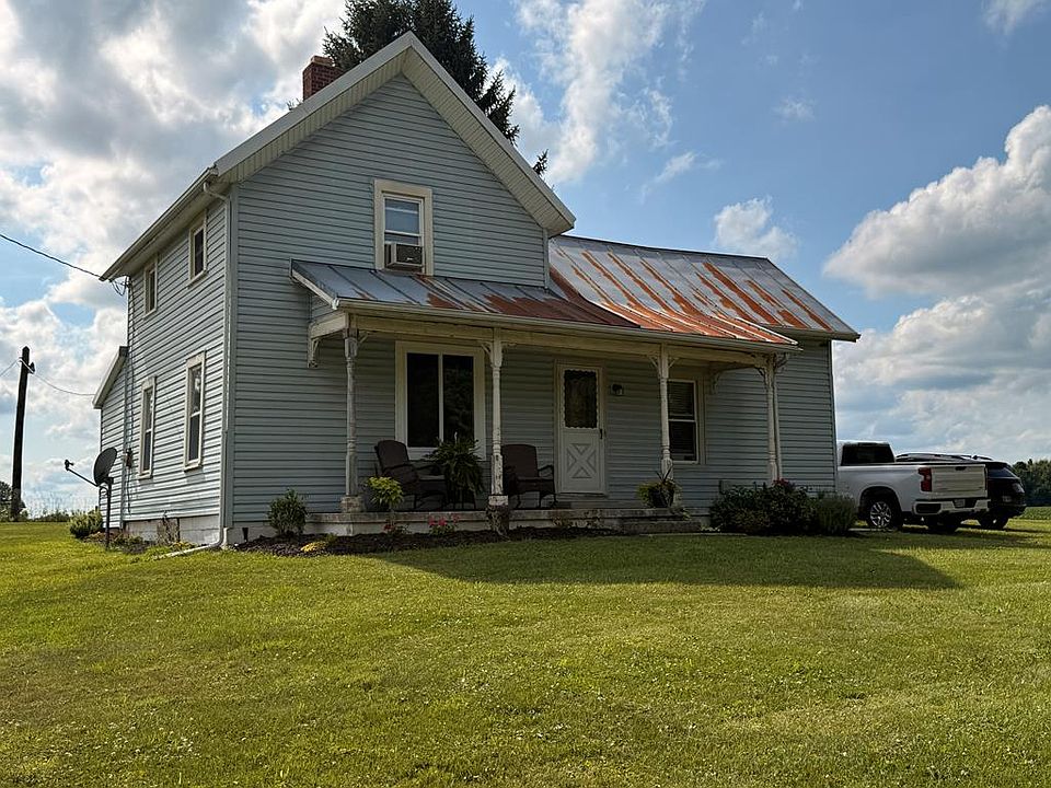 Escape to the peace and quiet of the countryside with this adorable 1.5-story farmhouse nestled on over 2 acres of beautiful land. With a cozy and functional layout, this home offers 2 bedrooms and 1 full bath—perfect for those seeking simplicity, comfort, and a slower pace of life. The main floor features a welcoming living space, a full bathroom, and a convenient main floor laundry room. The kitchen is open to a dining area with lovely views of the surrounding countryside. Upstairs, you'll find a charming second bedroom or bonus space—ideal for guests, a home office, or a creative studio. The window AC and standing AC will be included with the property. Step outside and enjoy the wide-open space of your private lot. Whether you're looking to garden, start a hobby farm, or simply soak in the peaceful rural setting, this property has all the potential to become your country retreat. The refrigerator in the detached garage is included. https://youtu.be/K2GB0Q95iw4?si=rtOLnvy1WIel2RnD