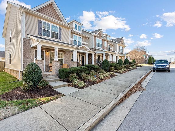 Charming end unit townhome with open concept floor plan and great natural light! Beautiful kitchen features plenty of storage, granite countertops and stainless steel appliances. Two bedrooms upstairs, each with their own ensuite and walk-in closets. Brand new roof installed! New carpeting and bathroom flooring upstairs. Updated fixtures throughout . Covered front porch, patio and garden beds in the back. One car detached garage. The highly sought after community features a clubhouse and pool and is conveniently located to the airport (5 miles), downtown Nashville and Percy Priest Lake.