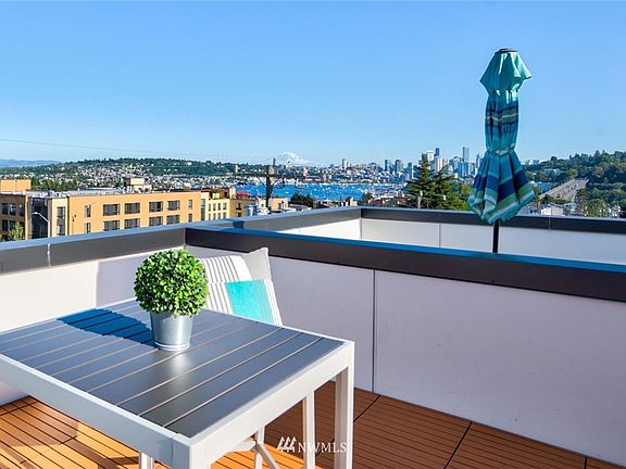 Almost-new townhome with spectacular views and light-filled layout in the perfect Fremont location! Walking distance to PCC, Marketime, coffee shops. Minutes from city center, SLU and highways. Expansive windows and high ceilings produce abundant natural light throughout. Immerse in the mountain and city views from your rooftop utopia or bedroom. Refreshing Quartz countertop and KitchenAid appliances in the gourmet kitchen. Unparalleled all-in-one package! Off-street parking space included.