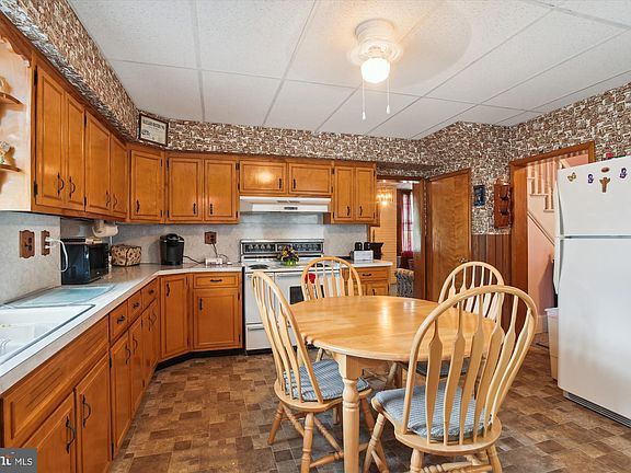 This spacious 3 bedroom, 1 1/2 bath colonial says welcome home. The large eat in kitchen has lots of counterspace. When you look out the kitchen window, you will see a level yard and an oversized 2 car detached garage. The garage has electric and room for work benches. The living room has room for Family gatherings. There is a formal dining room that could also be used as an office. Upstairs are 3 generous sized bedrooms. The armoire in the one bedroom does convey. There is a large storage area on the second floor with a closet. You will find walk-up stairs to the attic. When you venture into the walk out basement, you will find a storage area and laundry room. This well-maintained home features an updated roof 2008, siding 2010. You will love this home. Chairlift to second floor (included but could be removed). Seller is installing holding tank (August 2024)