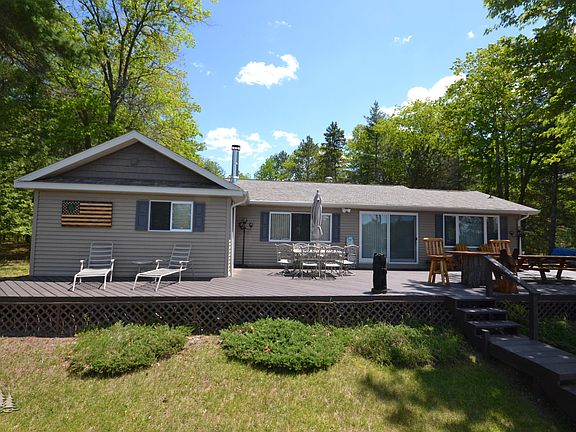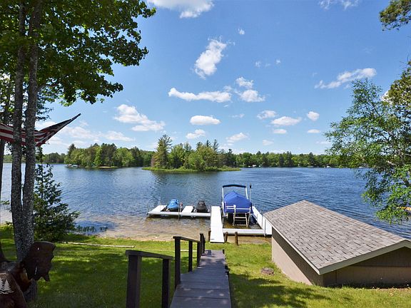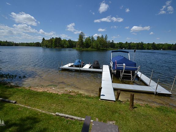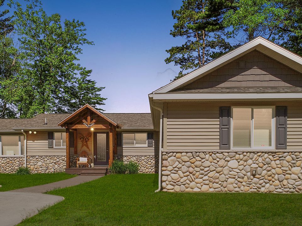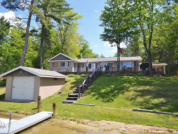 Stunning 3 bedroom, 2.5 bath home on all sport Tee Lake. This impressive home offers a modern/rustic design featuring knotty cedar interior, a massive real stone fireplace in living room, updated kitchen with granite counters; subway tile backsplash and rustic ceramic tile flooring so much more you must see for yourselves.. Enjoy your days relaxing on the sprawling deck overlooking the lake or cozy up around the fire pit. Property is nicely landscaped, well maintained and does have a Generac automatic generator. There are 2 detached garages, one of which is 48x24. Plenty of storage space for all the toys and extra guests. The dock is included. You won't want to miss this one of a kind home!