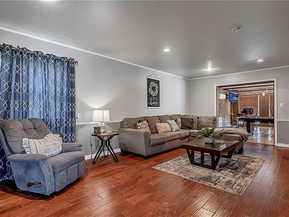 Beautiful brick home in the Coronado Heights addition. This home has 3 nice sized bedrooms, large kitchen and living and an Amazing game room or Man Cave as it is used for now. All new paint in the interior, wood floors, &crown molding. New carpet in the bedrooms. The kitchen has a really neat brick wall with a wall oven with storage above and below. Cabinets have been painted and new hardware, updated dishwasher. subway style backsplash. Built in pantry next to the fridge. Eat in kitchen with room for a large table. The laundry has its own enclosed closet area in the garage. The hallway is full of storage cabinets, updated lighting and ceiling fans throughout the home. The game room has a pool table and a bar. The large covered patio is also just off of this room. Enjoy shade while you grill and hang out. The backyard is a nice size and also has a firepit. There is a storage building and a covered area on the side of the home for yard equipment and anything hobby related. Must See!