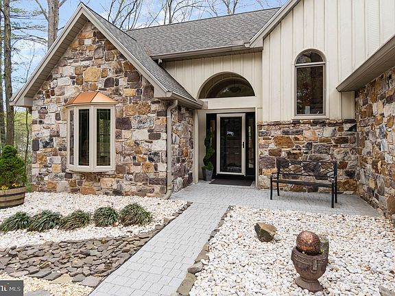 Fabulous Cape Cod home with mountain stone and vinyl exterior is nestled on a wooded 1 acre lot in the sought after community of Fishing Creek Estates! This home boasts a spacious open floor plan with 3,028 square feet of finished living space and provides an abundance of natural light. Step inside and find the living room with vaulted ceiling, hardwood floor and the mountain stone fireplace. Gorgeous kitchen with marble countertops, island with breakfast bar, stainless steel appliances, recessed lighting, and dining area plus the formal dining room with pocket doors and deck access are perfect for entertaining. Enjoy tranquil views of every season in the sunroom with ceiling fan and tile floor. Two spacious bedrooms, a full bath, half bath, and laundry room can also be found on the main level. Head upstairs and find the primary suite with balcony, 2 walk-in closets, and bathroom with walk-in tiled shower (2 heads!) and dual bowl vanity. Two additional bedrooms and a full bath complete the 2nd floor. Don’t miss the finished walk-out lower level that adds an additional 1,500 square feet of living space and includes a kitchen, family room, office, bedroom and a sitting room! The multi-tiered deck, and patios overlook the private, wooded rear yard. Other features include hardwood flooring, attached side-entry 2 car garage with pegboard and newly painted floor (2023), detached side-entry 2 car garage with finished 2nd floor for storage, garden shed, security system and more! A joy to own!