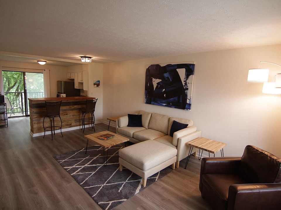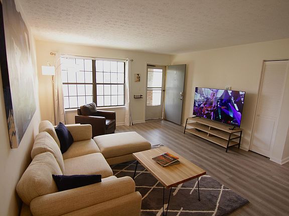 Spacious and newly remodeled two bedroom, one bath, fully furnished apartment. Quiet, second story unit with deck overlooking wooded backyard. Great location, walk to Kroger, gym, restaurants. Central location convenient to virtually anywhere in the city. Designated off street parking spot, central air, all new appliances. Laundry room on site. All utilities and internet/wifi included in rent. Fully furnished, available for a minimum of one month, up to a year. Pets considered for an additional fee.