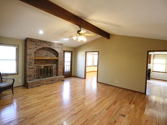 About 1,760 sq. ft. (per assessor) in this well kept brick home near Cox South Hospital and Kickapoo High School. Great room has cathedral ceiling and wood burning fireplace. Hardwood floors in great room, formal dining room and hallway. Kitchen has stainless steel range, built-in microwave, and eating area. Master bedroom has 2 closets. Master bath has separate tub and step-in shower. Back yard is fenced. Storage shed. New roof shingles in January, 2023.