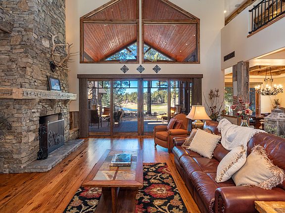 Prime location, rare opportunity near the Pine Canyon Clubhouse! The views are unrivaled and breathtaking! The homesite features #1 green, water and endless tree lines among the clubhouse backdrop. The great room features walls of glass to display the magical views. Floor to ceiling gas wood burning fireplace, imported reclaimed wood ceilings and floors, custom built-ins. Open and spacious high country perfection. Entertainers kitchen and dining room that overlooks the green and tree line. Main level master suite with access to patio that has fireplaceand optional spa, main level offers an additional en suite. Second story encompasses front and back dramatic display of #2 tees in front paired with the endless views of golf, lake and club in back. This is a special home!