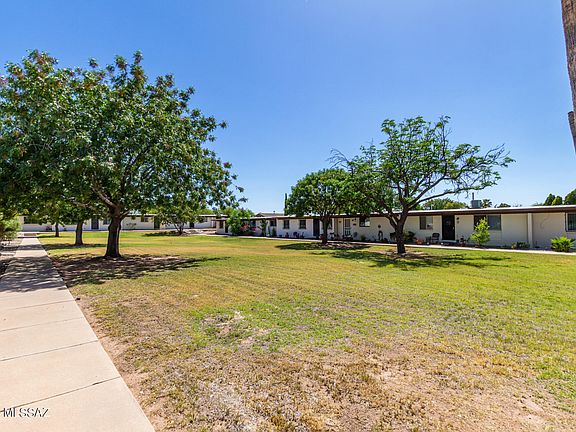 Welcome to this delightful 2-bedroom, 1-bath townhome bursting with vibrance and warmth. The open kitchen and dining area are perfect for hosting gatherings, while outside, a sprawling common area boasts lush greenery. Unwind in the spacious private backyard, complete with a wooden fence, covered patio, and shed. With a single-car carport at the rear, convenience is at your doorstep. Nestled near David Monthan Air Force Base, shopping, dining, and parks, this home offers both comfort and accessibility in a prime location.