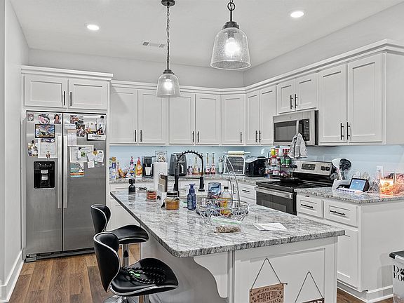 Experience refined living in this one year old 5 bed, 3 bath home. With an all-brick and rock exterior, bricked mailbox, and a two-car garage, this residence oozes curb appeal. Step inside to discover a spacious open concept living area featuring a gas log fireplace and luxury vinyl plank flooring throughout. The kitchen is a chef's dream with granite countertops, stainless appliances, and a breakfast bar, opening to a generous dining area. The main level boasts a luxurious primary suite with direct access, a spacious closet, tiled shower, and soaker tub. A guest bedroom and bath downstairs provide convenience, while upstairs offers three additional bedrooms and another bath. Don't miss out on this opportunity to own a stunning home. Schedule your showing today!