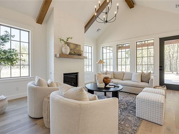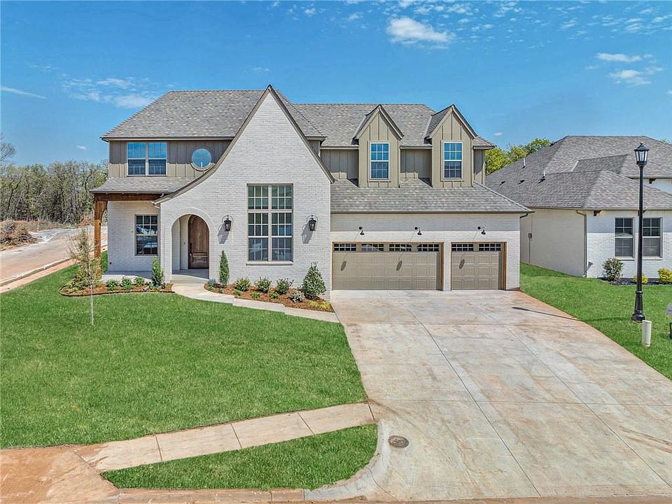 Welcome to Stone Hill at Iron Horse, Edmond's newest gated community featuring walking trails with a pond, and a pool + clubhouse coming in phase II. Gorgeous English Revival Tahoe plan by award winning builder + design team that have been featured in publications like Magnolia & House Beautiful. So many custom details including a round door, wood beams, windows with grid patterns, built-in makeup vanity, beautiful wallpaper in the bathroom etc. True 4 bedroom with an office + bonus room on a wooded corner lot within walking distance of the future community pool. Two beds plus an office down, with 2 beds and a bonus room upstairs. Kitchen features huge island with storage, lots of natural light, Frigidaire Pro Series appliances and a walk-in pantry. Primary suite features a large shower, pretty tub and a closet that connects to the laundry. Located just west of I-35 off of Coffee Creek & Coltrane, close to Showbiz Theater, Starbucks and new Crest Foods coming soon.