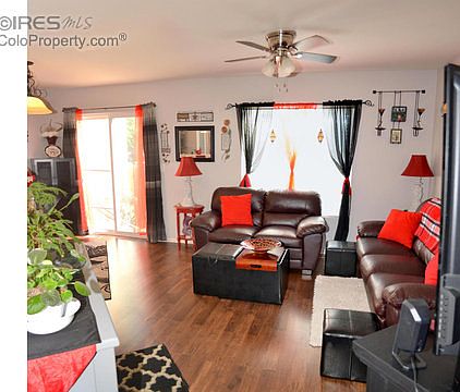 Fenced backyard area, new concrete patio & newly installed artificial turf backyard with stone border as of August 2020. newer stainless microwave & oven as of February 2024. Open main level floor plan, 1/2 bath on main level. each bedroom has its own sink. Completely remodeled upstairs bathroom with ceramic tile floor & new walk in shower in shower & sinks with new cabinets under both sinks as of July 2021. brand new installed huge walk in closet plus another newly redone closet for the west facing bedroom as of June 2021. New smoke detectors & new ceiling fans in both bedrooms as of July 2021. Brand new carpet installed on stairs & both bedrooms upstairs as of October 2021. brand new hardwood floors put in on the ground level by Schmidt custom floors of Loveland in March 2022. Brand new $21,810 HVAC system as of 9-February-24