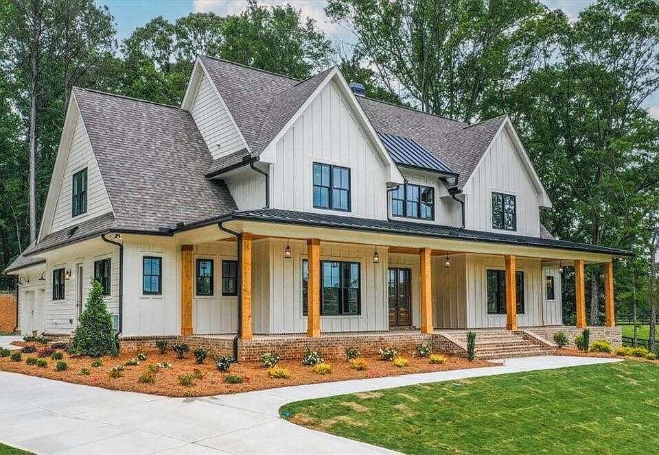 Farmhouse Luxury AVAILABLE NOW-built by RMB Residential. Welcome to 4008 Union Hill Rd in Alpharetta, Cherokee County! This stunning home offers a super convenient location with easy access to Alpharetta, Crabapple, and Roswell. Nestled on 2 acres of beautifully wooded privacy, this property provides a tranquil retreat from the bustling city. An expansive front porch welcomes you with it's charm and provides a delightful space to enjoy the outdoors and soak in the picturesque surroundings. As you step inside, you'll be greeted by a spacious and thoughtfully designed interior. The home boasts 4 bedrooms and 4 full baths, providing ample space for comfortable living. The full unfinished terrace level offers endless possibilities for customization and additional living space, tailored to suit your specific needs. The kitchen is a chef's dream, featuring top-of-the-line KitchenAid appliances and exquisite quartz countertops. The crisp white cabinetry provides a bright and modern aesthetic, complemented by a spacious island that serves as a central gathering point. A prep kitchen and walk-in pantry provide convenient storage and workspace, while a pocket office offers a dedicated area for productivity. The main level features an open concept layout that seamlessly connects the dining area and fireside family room, perfect for entertaining guests or spending quality time with family. The lounge is adorned with built-in bookcases, adding a touch of elegance and functionality. The master suite, conveniently located on the main level, offers a serene retreat with a spa-like bath featuring an expansive and beautifully tiled walk-in shower. Additionally, you can walk out from the main level to a covered brick patio, complete with a cozy fireplace, creating a perfect outdoor oasis for relaxation and outdoor gatherings. Upstairs, you'll find a media room/recreation area, perfect for movie nights or game days. Three spacious bedrooms and two full baths provide comfortable accommodation for family members or guests, ensuring everyone has their own space and privacy. Don't miss this new construction opportunity offering a desirable location, privacy, and a host of luxurious features. Come take a look and make this exquisite property your new home sweet home!
