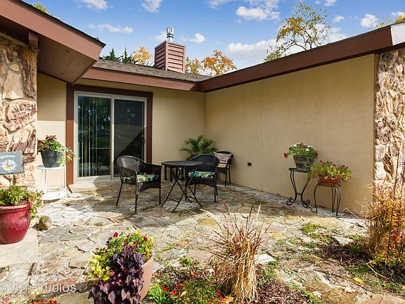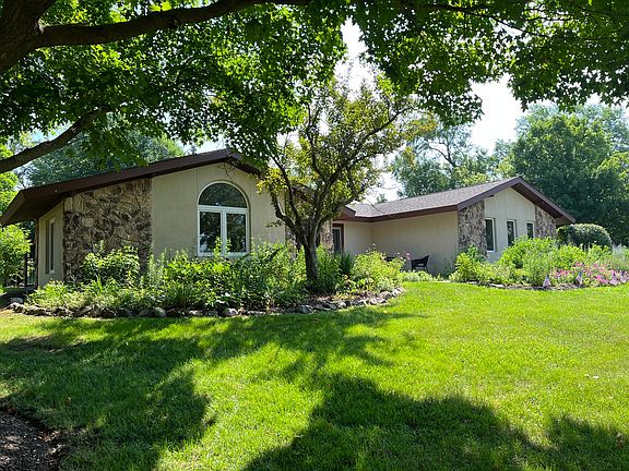 A great place to call home ~ welcoming ranch on 3/4 acre in an unbeatable cul-de-sac location populated with mature trees and natural perennial gardens! Built as an environmentally friendly home, the current owners have continued in this tradition with modern updates to this 2,285sf home that are also environmentally conscious. Recent 2022-3 updates include a new electric panel, AprilAire whole house humidifier and iron filter on the water softener. The kitchen's 2019 updates include new custom cabinets, some with glass fronts, floating live-edge shelving, granite counters and new appliances. Extra light brightens the kitchen and breakfast bar from the skylight in the vaulted ceiling and the kitchen window overlook a 1,400sf fenced patio area. Warm Bamboo plank floor (2020) runs through the large living room and it's cathedral ceiling creates volume. Adjoining the kitchen is the family room, also with bamboo flooring and vaulted ceiling, but there's more! The fireplace has customized millwork and travertine tile that create a sense of elegance and charm. An updated half bath is available for easy guest access off the front hallway. There are two patio doors, one accessing the oh-so-charming front flagstone patio and walkway and the second accessing the rear yard fenced patio in area. Custom, hand-crafted millwork provides the finishing touches in these updated rooms. Wrap around into a wing of the home and you'll find the main floor laundry located directly off the garage. The four bedrooms (two with cork flooring) and the two full baths are also down this wing. All the bedrooms have vaulted ceilings and ample closet storage. Trane 96% high-efficiency furnace in 2019 and the home has a whole house air exchanger. The two double pane sliding Andersen glass doors and the therma-tru front door were replaced in 2015. In 2014 the roof was replaced after a complete tear off and shingles are 25 year architectural grade. When the home was built, the exterior walls were made to be 1" thick concrete which helps to insulate the home. Shenandoah Estates is conveniently located near Prairie Ridge High School, includes a community owned green space where community gatherings are held and is in unincorporated McHenry County. This is a special house that you'll want to call home!