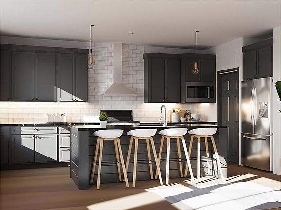 Enjoy Summer Movie Nights and the festive Holiday Tree Lighting event at Hastings Green, just steps from your door. This newly released END townhome offers 2,046 sq ft of beautifully designed space, featuring 3 bedrooms, 2.5 bathrooms, an attached 2-car garage, an a finished lower level game room. Ideal for those seeking low maintenance living without sacrificing space, this home includes a generous laundry room, a spacious kitchen with a walk-in pantry, and a dining room perfect for family gatherings. Enter through the lower-level gallery, which connects to the game room & garage. Walk to the main level to find a stylish kitchen showing off beautiful cabinetry accented by an island finished in black, quartz countertops, a tile backsplash, and stainless-steel appliances. The large dining room is perfect for hosting family and friends. The upper level boasts a spacious Primary Suite with a walk-in closet and a full bathroom. Two more bedrooms and another full bath complete this level.