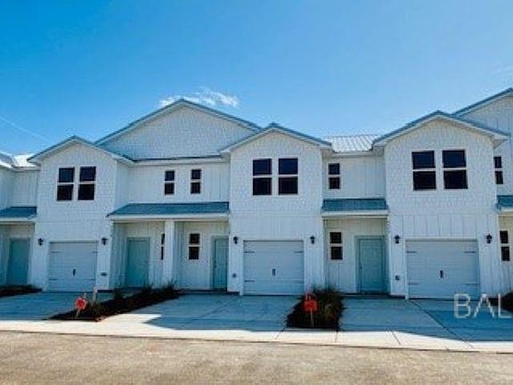 MOVE-IN READY Coastal Dream home. Ready for primary residents or investors. In house mortgage team offering special rate incentives plus builder offering $ towards closing. PLUS, 5k for blinds, fridge, washer/dryer. Welcome to the Palm, at our brand-new townhome community of Lost Bay in Orange Beach, Alabama! Here you will enjoy peace and quiet along with the convenience of being just 5 minutes to private beach access/parking for Orange Beach residents, Orange Beach City schools, the Wharf (shopping, dining and concerts), Orange Beach Rec center (pool, tennis. gym), OB Golf Center, and an abundance of shopping and dining, and the Beach Express offering a quick commute. Why squeeze in a tiny space elsewhere? Here you get 1437 sq. ft 3 bed/2 full bath upstairs plus oversized half bath down. 9' ceilings down with upgraded coastal trim, granite counters throughout. Single car garage to store beach supplies, golf cart, jet ski, etc. HOA includes water, sewer, trash, lawn, irrigation and more. Schedule a tour to find your coastal home at Lost Bay today. Buyer to verify all information during due diligence.
