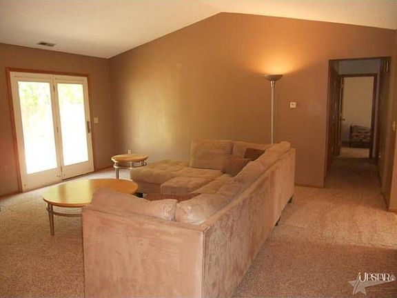 Open, inviting ranch with large living room featuring wood burning fireplace and cathedral ceilings. Pella slim shade windows throughout. New carpet just installed! Interior freshly painted. Master Bedroom includes 2 closets and full bath. Large private backyard! All appliances stay including washer & dryer.