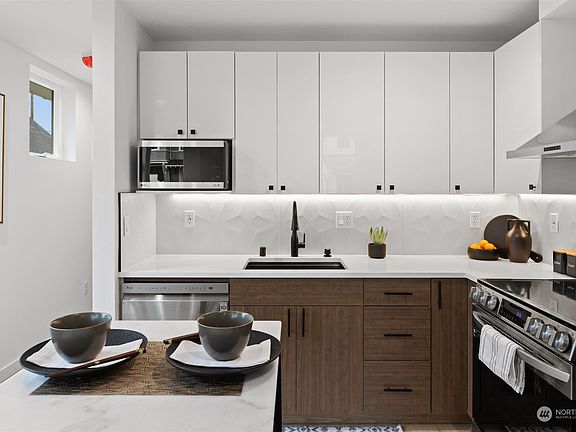 LAST HOME REMAINING! Experience urban living at its best in the heart of Wallingford! This exquisite new construction home boasts contemporary style and convenience at every corner. Entertain on either the stunning rooftop terrace (with Seattle skyline & Lake Union views) or the spacious 22’ landscaped yard – a rare find. Cozy up by the fireplace on those rainy days. Revel in upscale touches such as custom lighting, elegant tile accents, and modern stainless steel appliances – epitomizing modern elegance. With dedicated off-street parking and ample exterior storage, this residence effortlessly combines style with practicality. Explore nearby attractions like Gas Works Park and Wallingford's dining and retail spots just steps away.
