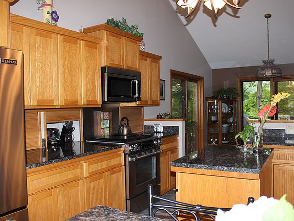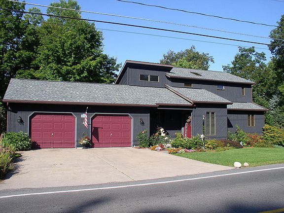 Oswego Waterfront Sanctuary-Vacation everyday in this beautiful waterfront home located in Scriba! Feeling stressed after a long day-Enjoy the peace & quiet riverside-relaxing on the 120' decked retaining wall, take a leisurely ride in your boat-anchored at your 40' year around dock, or grab the fishing pole. This home boasts an open floor plan with cathedral & vaulted ceilings, waterview from most rooms, 2 gas fireplaces. Kitchen has granite counters, Jenn Aire appliances, recessed appliances garages, breakfast bar, island & plenty of cabinets- including 2 pantry units. Dining room with slider to spacious main floor deck. Bright & airy living room with a wall of windows facing the river, patio door to deck & a beautiful gas fireplace. Master suite on upper level includes master bath with heated floor, laundry chute, balcony overlooking the river & an indoor spa/hot tub. 2 Bedrooms on main level-one that features a bow window overlooking river & has a vanity sink area. Nice laundry room with sink, closet & cabinets on main floor. Walk out lower level could be used as a guest suite - large bedroom, bath & spacious family room w 3 defined areas (800'+ included in finished sq ft). Basement workshop 15x15 & utility room 13x8. Decks off all levels for breathtaking view. 8'x16' storage building at riverfront for the water toys. Call Owner 315-529-1651