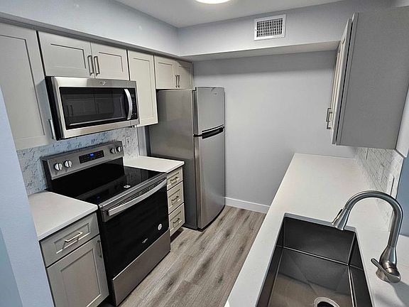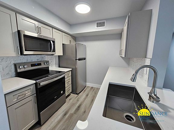 - Exterior features: 2 Bathrooms, 2 Bedrooms, 3rd Floor Unit, Community Parking Lot, Flooring: NEW LVP, Flooring: New, Full Kitchen, HOA Rules & Regulations Apply, HVAC: Central Electric, Living/Dining Room Combo, Neighborhood Sidewalks, New Appliances, New Cabinets, Newly Painted, No Smoking permitted, Pavilion/Gazebo, Shower/tub combo