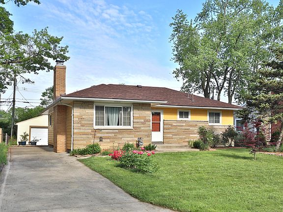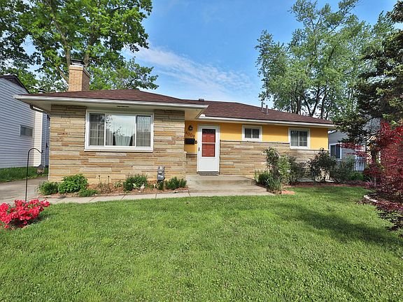This stone front ranch offers tons of updates!! Remodeled kitchen in 2022 with dark wood cabinets - butcher block counters - open and airy upper shelves bring in a fun modern vibe to the 1950s charm! Hardwood floors throughout 1st floor. 3 nice size bedrooms with ample closet space. Large bathroom with big vanity, new flooring. REPLACED ROSATTI WINDOWS!! REPLACED HOUSE ROOF 2022! Full basement with rec space, and oversized utility half bath, room to add shower!! Tons of storage. Washer/dryer stay! Outside offers a deck space plus a mostly fenced backyard, garden, swingset (stays), oversized 2 car garage is currently used for storage but could house multiple cars and projects to boot!! This house is perfect place to call home.