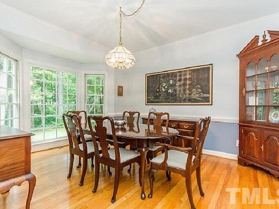 Secluded piece of heaven yet convenient to everything the Triangle Area has to offer. Beautiful 2-story foyer. Formal DR & LR. Nicely appointed kitchen opens to huge FR w/wood-burning FP. Brkfst area & DR have bay windows. FR has 2 sets of french doors leading to deck, screen porch, separate hot tub deck w/ roof and huge paver patio. MBR w/ large ensuite featuring tiled shower, jetted garden tub, double vanity, & huge W/I closet w/ built-ins. Large Bonus Rm. Landscaped yard includes 2 water features.