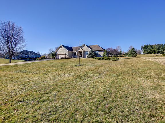 Beautiful ranch home in coveted Hillcrest Estates! Situated on almost an acre lot, this home has three bedrooms, two full bathrooms, and two half bathrooms. Enter the front door into the open layout which combines the family room, dining room and kitchen with vaulted ceilings and skylights. The family room has a gas fireplace and a slider door which leads to the two tiered deck. The kitchen has granite countertops, a breakfast bar, and plenty of cabinet and countertop space perfect for entertaining. Main floor laundry is located in the half bathroom off of the two car attached garage. The main level has a master bedroom with a tray ceiling, walk in closet, and spacious master bathroom with a walk in shower and separate tub. The main level also has two other main floor bedrooms. The basement is finished and offers an office or potential bedroom, a half bathroom, game room with a wet bar, bonus room, and a theatre room! The deck leads to a 16x20 brick paver patio with a pergola. In addition to the two car attached garage there is a second 24x24 garage! Furnace replaced 11/2021. This home has a whole home Generac generator for added protection!