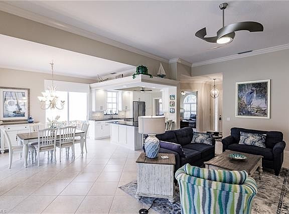 Make the most of your Florida lifestyle with over 1,000 square feet of outside living space on your enormous screened patio and covered lanai! A beautifully renovated single family Oakmont for over $140k by Cornerstone Builders has transformed this home into a current and move-in ready home! The middle of the community, cul-de-sac location adds lasting value and provides an easy walk to the on-site restaurant, 3 pools, and amenities hub - referred to as Town Center. In addition to the renovated kitchen and baths, this home had a new roof installed in 2019, and a new 16 seer a/c unit in 2020. Roll down hurricane shutters, many are electric, provide ease of use and peace of mind during storm season. You can't duplicate this home in North Naples at this price. High speed fiber optic internet, tv, telephone, and full use of all amenities is included in the quarterly HOA fee. Turnkey package available too.