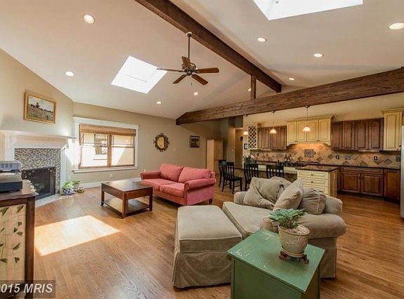 Rancher style home w/upgrades throughout! Sprawling main level offers a formal dining room leading to a Chef's kitchen w/expansive granite counters, farmhouse sink, custom 42" cabs, SS appliances incl. 2-wall ovens & more! Opens to the living room w/beamed 12' cathedral ceilings, Gas FP & access to private backyard. Hardwood floors & freshly painted throughout. 2 Owners Suites & Newly Finished LL!