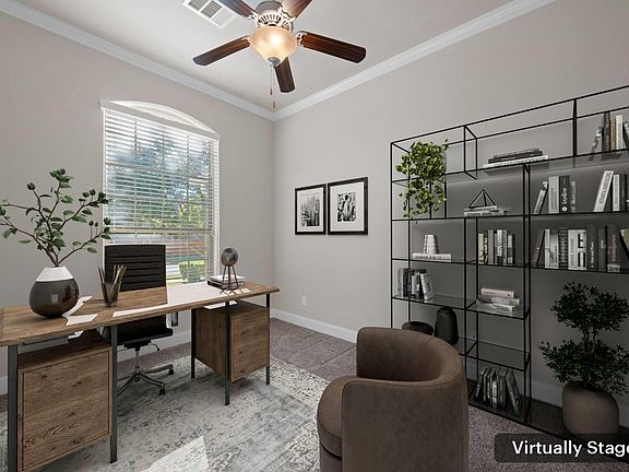 Perfectly situated on a quiet cul-de-sac street in the desirable Highlands at Mayfield Ranch, this stunning single-story home combines thoughtful design with modern updates for move-in ready living. Offering 4 bedrooms, 2.5 baths, and a dedicated office with French doors, the bright open floor plan is filled with natural light and accented by crown molding, soaring ceilings, and graceful archways. The kitchen serves as the heart of the home with granite countertops, stainless steel appliances, a newly purchased microwave, and an oversized island with extended seating that flows into the breakfast nook, formal dining room, and spacious living area. The private primary suite is set apart from the secondary bedrooms and features a large bath with high-end finishes, while the remaining bedrooms provide generous space for family or guests. Recent updates include a new roof with high-end shingles (2023), extra-wide gutters with leaf filters, a new water heater (2023), HVAC replaced within the last three years, updated fiber optic cable, and fresh interior and exterior paint (2025). Tile flooring runs throughout the main living areas with plush carpet in the bedrooms for comfort. Outdoors, enjoy an extended patio and a backyard framed by a limestone wall, perfect for relaxing or entertaining. Conveniently located near shopping, dining, and entertainment, this well-maintained home in Georgetown ISD offers both style and practicality in a friendly, welcoming community.