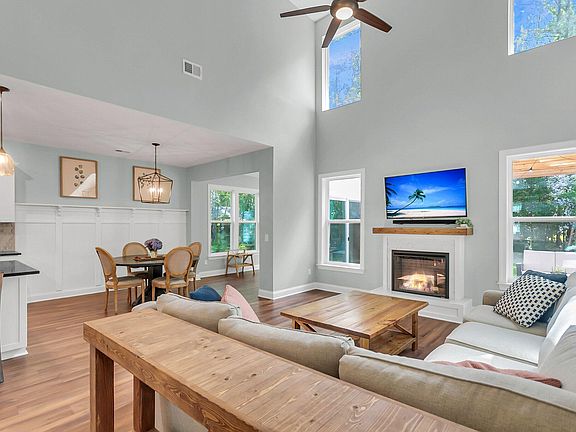 Discover tranquility and modern elegance at 4009 Menola Ct. This captivating 3-bedroom, 2.5-bathroom, 3 car garage home is beautifully situated on a sprawling 1-acre cul-de-sac lot, offering unparalleled privacy and scenic views.Upon entering, you're welcomed by high ceilings and continuous hardwood floors bathed in natural light. The open-plan living area features a cozy fireplace and flows seamlessly into a gourmet kitchen, complete with white cabinetry, stainless steel appliances, and an inviting island--perfect for casual meals.The first floor also includes a versatile home office with French doors, ideal for remote work or creative projects. The dining area extends to a charming deck, perfect for entertaining or enjoying peaceful outdoor moments amidst the lush landscape.Ascend the stylish staircase to discover the airy loft, offering endless possibilities as a fourth bedroom or a creative retreat. The luxurious primary suite boasts an ensuite bathroom for your comfort and convenience. Outside, the well-maintained lawn and welcoming front porch add to the home's charming curb appeal. With an attached 3 car garage and contemporary amenities, 4009 Menola Ct is the perfect blend of modern living and serene surroundings.