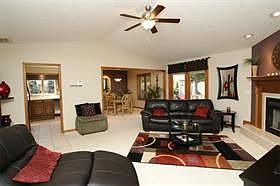 Move-In Ready, Open Concept Condo! Step into great room with vaulted ceilings, fireplace, and atrium doors that open to serene outdoor living space. This backyard features in-ground pool with stamped concrete surround, privacy fence, storage building, and multi-level decks ideal for outdoor living & entertaining. Great room opens to the formal dining room with recessed lighting and an updated kitchen with ceramic tile floor & backsplash and matching stainless steel appliances. Master suite includes his & her closets, powder room with oversized vanity and separate on-suite bath. Another feature includes private bedroom & full bath as possible guest quarters.