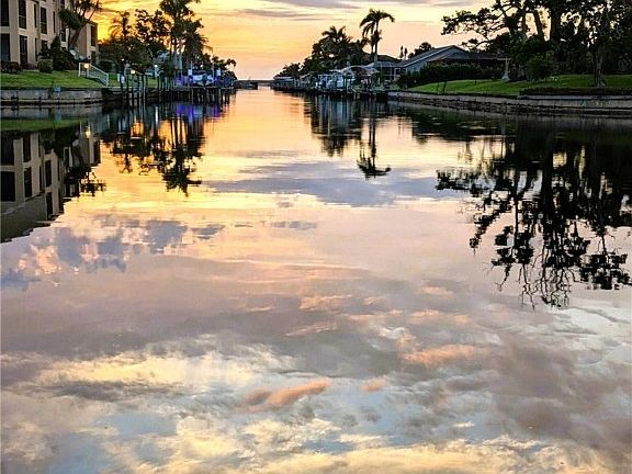 YOU CAN SEE THE RIVER FROM YOUR LANAI!! This rare TURNKEY condo has a jaw dropping INTERSECTING VIEW and is located on the 200 ft RUBICON Canal looking straight down the Plato canal to the river, it’s a quick shot right out from this quiet complex just off Country club. This desirable 1st floor condo has been remodeled with new tile, new kitchen cabinets, stainless steel appliances, granite countertops and much more! This very well maintained home also has extra kitchen cabinets, a pass through to dining area, a spacious master suite with sliding glass door to the lanai and a window with a view of the canal. The large inside laundry room has storage and a newer washer/dryer. This home is in a very sought after area, close to everything and in a well maintained complex with only 16 units. This is a beautiful location on a dead end street with first come first serve common dock for your boat. Enjoy the never ending views and amazing sunrises sitting on your screened lanai. Call today for your private showing!