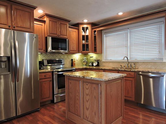 This home has it all! When you walk into the open living area of this stunner you are greeted with warm colored Pergo Flooring, an upgraded kitchen featuring Brazilian Granite Countertops, Tavertine Tile Backsplash, and Custom Built Cabinets. The first floor bathroom has tile flooring and both full bathtubs are surrounded by beautiful ceramic tile. Don't forget to check out the bar in the MAN CAVE with a cozy sitting area FANTASTIC for entertaining!!! In the summertime you can move the party outside to the deck. The two and a half car garage has a woodstove for all you folks who want to work on your toys in the cold winter months. There is even an extra storage shed for additional space. The backyard is fully fenced too! This is a must see. Call me today for your private showing.