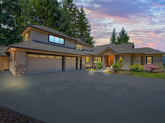 Escape the city and say yes to living in the heart of the PNW! Only 10 minutes from town, you will find this custom-built gated home on 6.7 acres. Surround yourself with the majestic mountains, McKenzie River views, abundant forest land, and landscaped park-like setting. The grand entrance leads to an open floor plan with a gourmet kitchen, a large cook island, granite counters, and a walk-in pantry. The living room offers stunning floor-to-ceiling windows, a soaring beamed ceiling, and a fireplace with surrounding built-ins. The main level offers a dedicated office and two primary en suites, each featuring large stone-tiled walk-in showers, dual vanities, granite, and spacious walk-in closets. For separation of space, head upstairs for an additional bedroom, full bath, and an oversized bonus room/family room or workout room. The primary en suite offers exterior doors leading to the backyard and a wonderful hot tub, the perfect way to start your day or watch the fantastic sunsets. This property also offers an oversized 3-car garage and plenty of additional parking for RV, boats, and friends. Enjoy the deer-protected raised garden beds, grape and kiwi lines along the lower fence, and a variety of fruit trees, including apple, pear, fig, pear, plum, cherry, hazelnut, goji berry, mulberry, and walnut. Take advantage of the tire staircase east of the backyard by the fire pit, which will lead to your personal trail system thoughtfully designed to access a secluded waterfall. This home offers everything you have been looking for and will not last long. Schedule your showing today to experience what living in the PNW is all about!