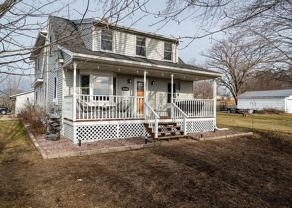 Convenience between Osseo and Whitehall in the Village of Pigeon Falls just off the main road. Covered front porch greets you to the shaded yard with cherry trees and hillside view. Newer three stall garage for parking with rear deck and yard access to the hot tub from the rear family room addition. Main level kitchen, dining room, and large living room with full bath. Primary bedroom large enough for king bed with plenty of closet storage and privacy. Two additional bedrooms with a den or office room. All appliances are included along with many updates for a well appointed home in a small community near major employment centers. Metal roof on garage that can easily be finished, updated mechanicals and a large yard for recreation to fit needs and wants.