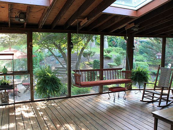 Open concept living area with zen-like feel. 52 foot long screened in porch with hot tub built in. 3 tiered landscape design featuring 2 large Japanese maples, fish pond and elaborate gardens. Central air, hard wood, granite and ceramic flooring throughout. Fireplace on main floor and also in finished basement. Basement has new laminate flooring and separate laundry room.