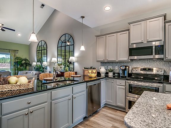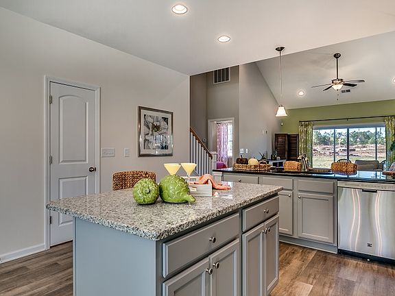 The Saluda is a corner location villa and offers a large Family Room with Vaulted Ceilings, Open Kitchen with serving bar & work island along with a first floor Owner's Suite. Other features include a Covered Porch, large Utility Room, second floor Loft, 2-Car Garage. This home is loaded with upgrades such as painted cabinets, quartz countertops in the kitchen, granite countertops in the bathrooms, vinyl plank flooring and tile. ADDRESS